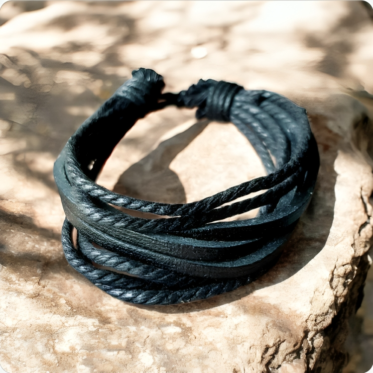 Adjustable Leather and Cord Bracelet