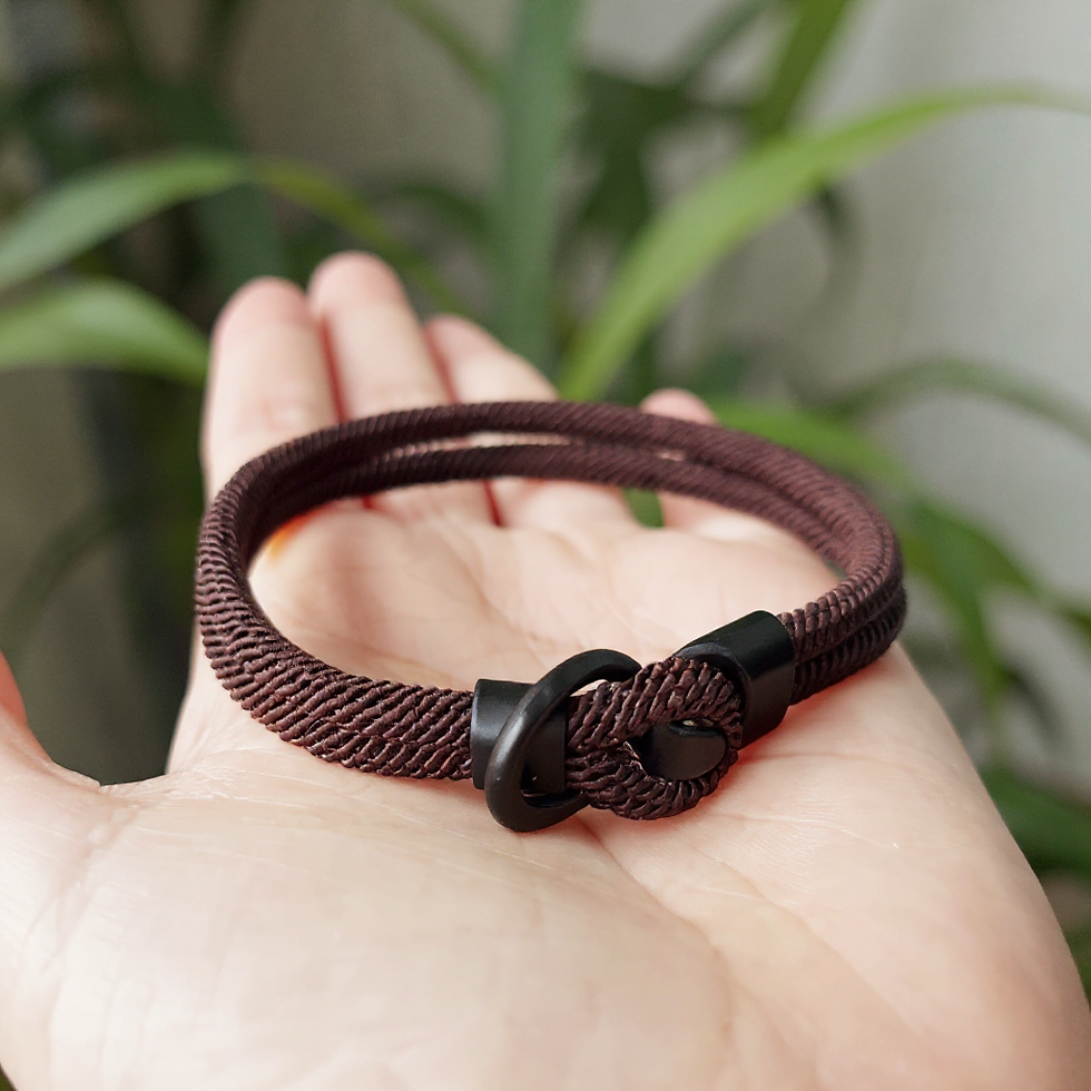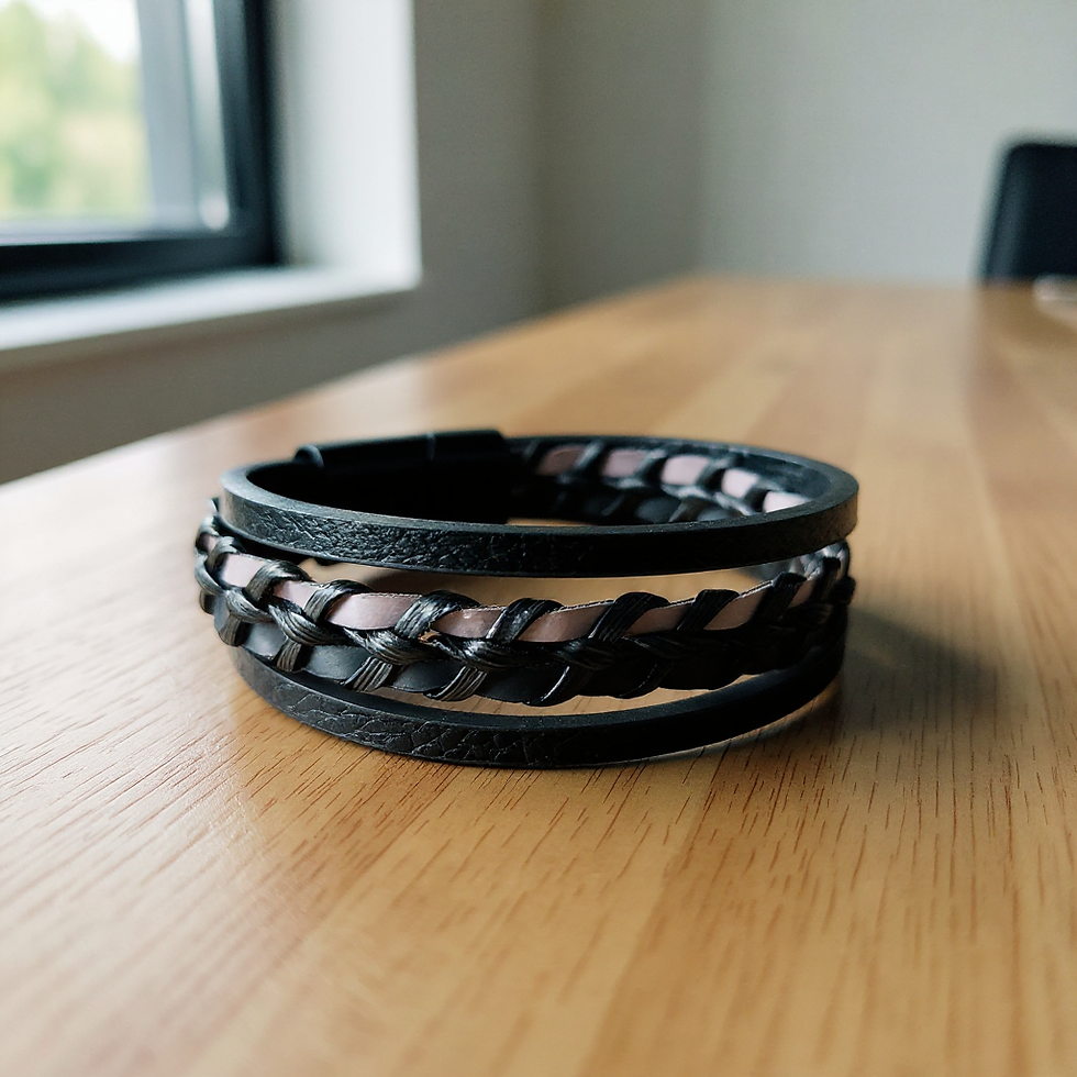 Strong Double Layered Leather Bracelet with Stainless Buckle